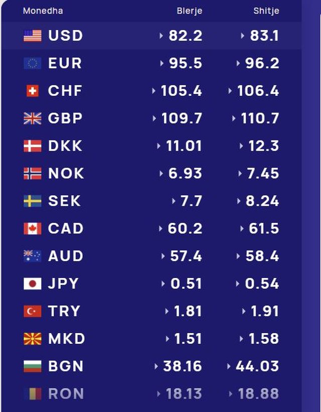 Më poshtë, po sjellim të dhënat e këmbimin valutor, për të gjitha monedhat e huaja: