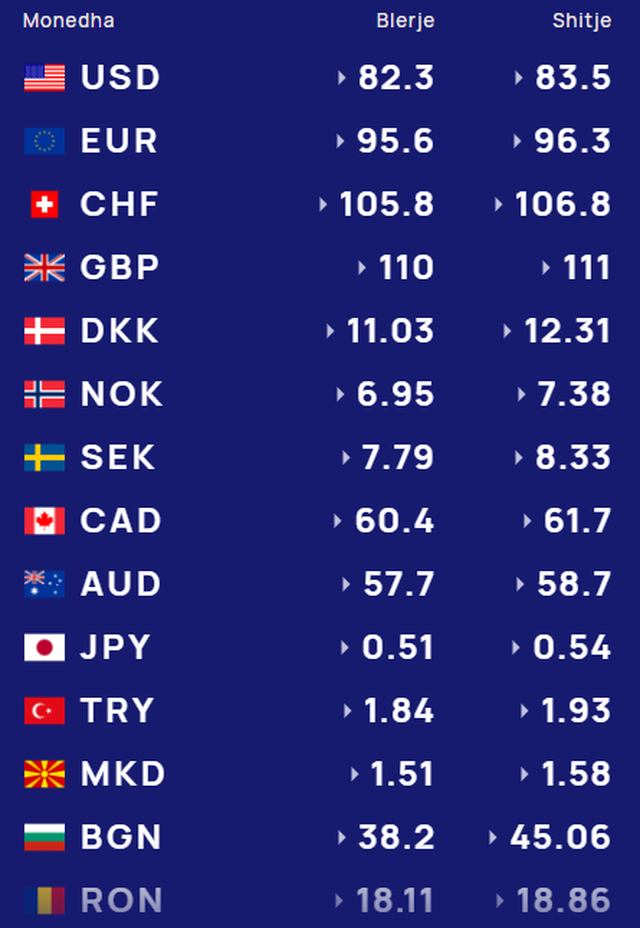 Më poshtë, po sjellim të dhënat e këmbimin valutor, për të gjitha monedhat e huaja:
