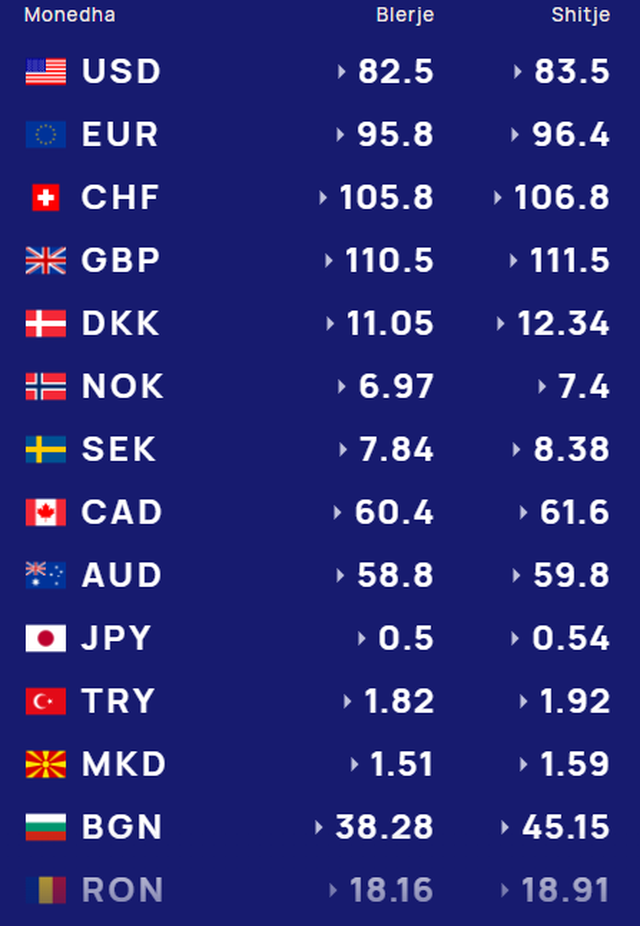 Më poshtë, po sjellim të dhënat e këmbimin valutor, për të gjitha monedhat e huaja: