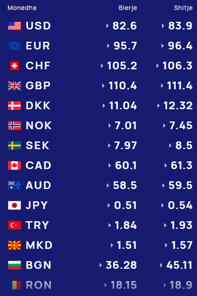 Më poshtë, po sjellim të dhënat e këmbimin valutor, për të gjitha monedhat e huaja: