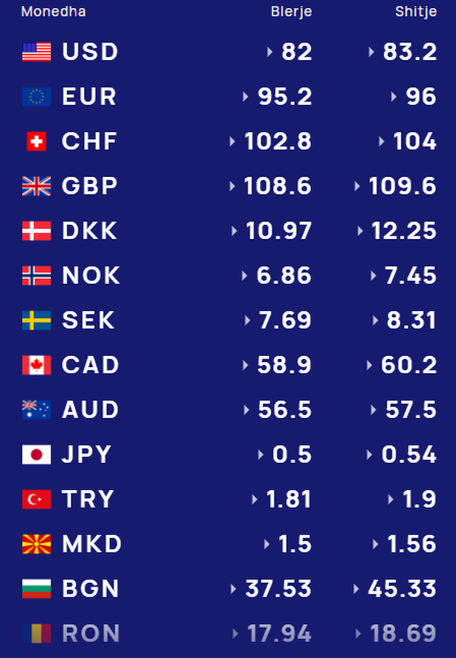 Më poshtë, po sjellim të dhënat e këmbimin valutor, për të gjitha monedhat e huaja: