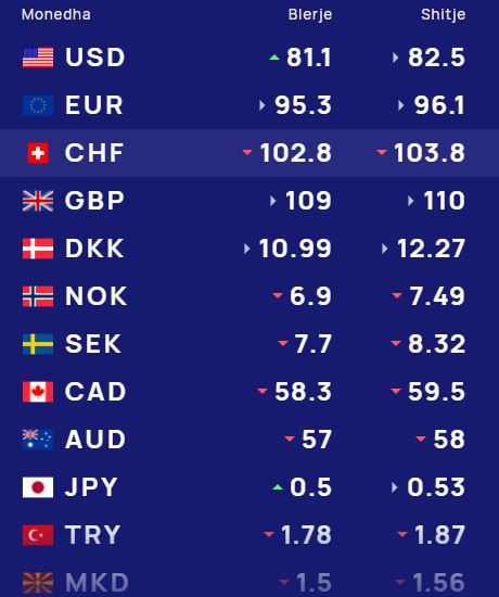 Më poshtë, po sjellim të dhënat e këmbimin valutor, për të gjitha monedhat e huaja: