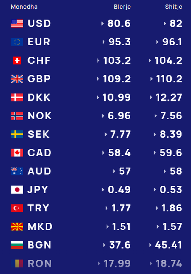 Më poshtë, po sjellim të dhënat e këmbimin valutor, për të gjitha monedhat e huaja:
