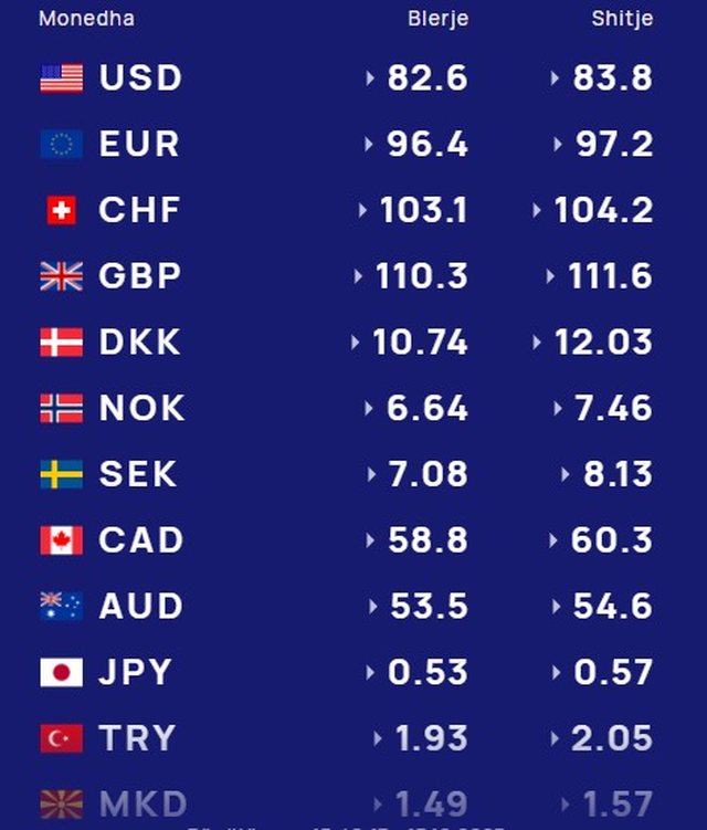 Më poshtë, po sjellim të dhënat e këmbimin valutor, për të gjitha monedhat e huaja: