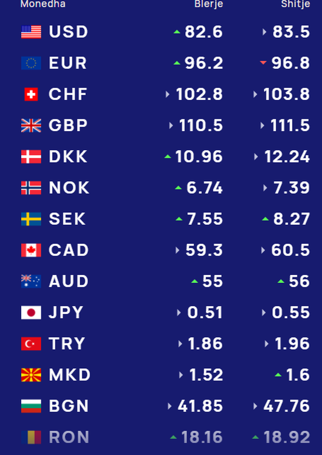 Më poshtë, po sjellim të dhënat e këmbimin valutor, për të gjitha monedhat e huaja: