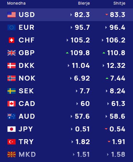 Ndërsa paundi britanik do blihet me 109.8 lekë dhe do shitet me 110.8 lekë.