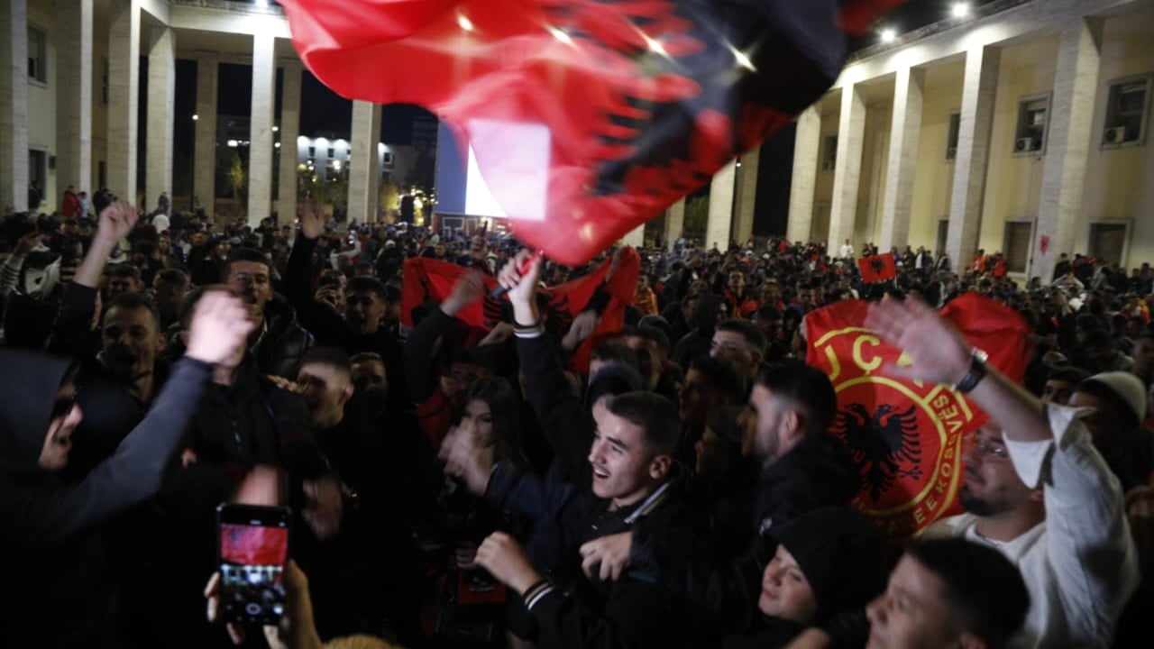 Tifozët kuqezi po shijojnë atmosferën në sheshin “Italia” aty ky kanë vendosur të ndjekin ndeshjen Serbi-Shqipëri.