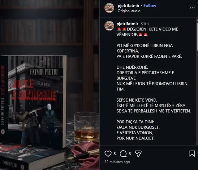 Bëhet me dije se shkak është bërë publikimi në profilin e Instagramit të tij, të një audioregjistrimi ku akuzon Drejtorinë e Burgjeve se nuk e kanë lejuar që të botojë një roman që ka shkruar, pasi përmban akte dhune.