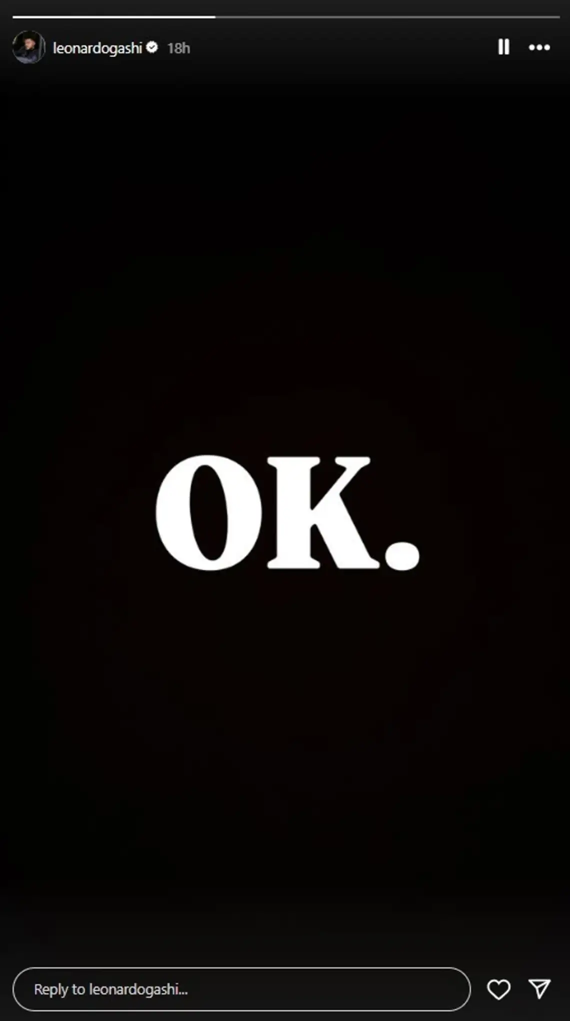 Pas deklaratës së gjatë dhe të ndjerë të Lelës mbi ndarjen e saj nga Leo, ka ardhur edhe reagimi i parë i ish-banorit të Big Brother VIP Kosova. Leo ka zgjedhur të përgjigjet në mënyrë të shkurtër dhe të thjeshtë përmes një InstaStory, ku shkruante vetëm një fjalë: “OK”. Ky reagim minimal ka ngjallur menjëherë interpretime të ndryshme nga ndjekësit dhe fansat në rrjetet sociale.