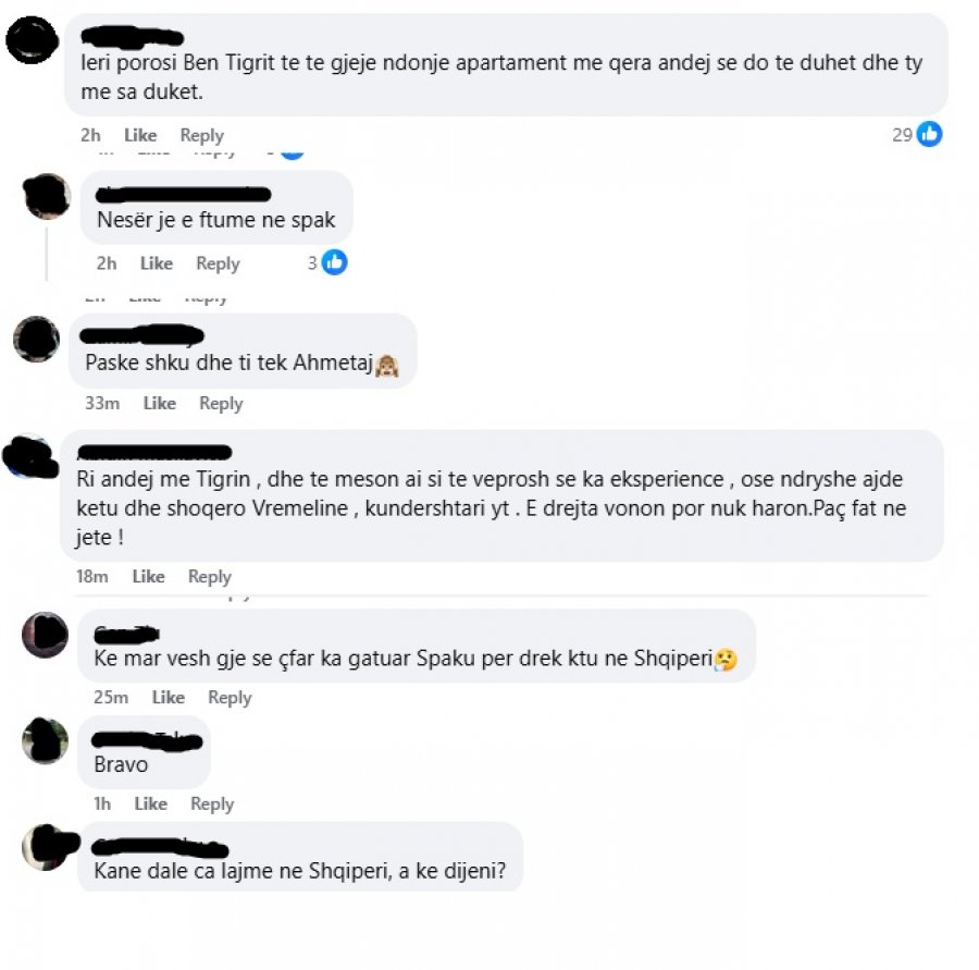 “Lëri porosi Ben Tigrit të të gjejë ndonjë apartament me qera andej se do të duhet dhe ty me sa duket” – shkruan një tjetër.