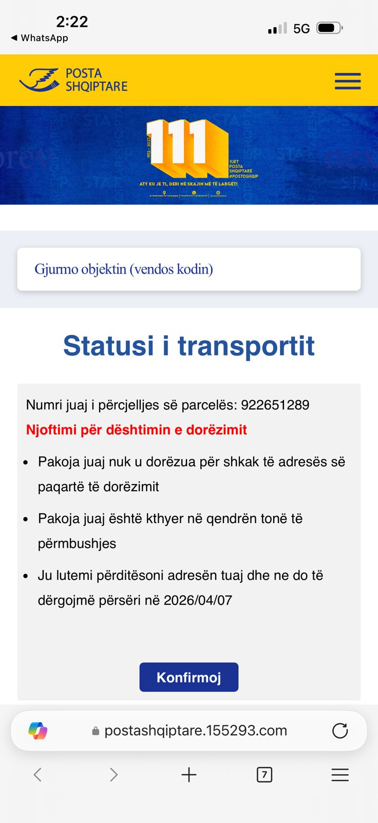 Drejtoria për Hetimin e Krimeve Kibernetike në Policinë e Shtetit, ka ngritur alarmin për përhapjen e mesazheve SMS mashtruese, të cilat paraqiten në mënyrë të rreme si njoftime nga shërbimet postare për dorëzimin e paketave.