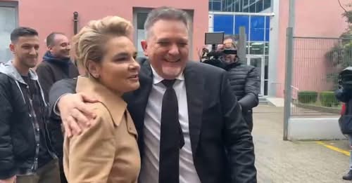 Teksa hynte në derën e godinës së SPAK-GJKKO, Kryemadhi u përshëndet edhe me një grup gazetarësh dhe aktorësh që qëndronin para institucionit, duke shkëmbyer edhe batuta.