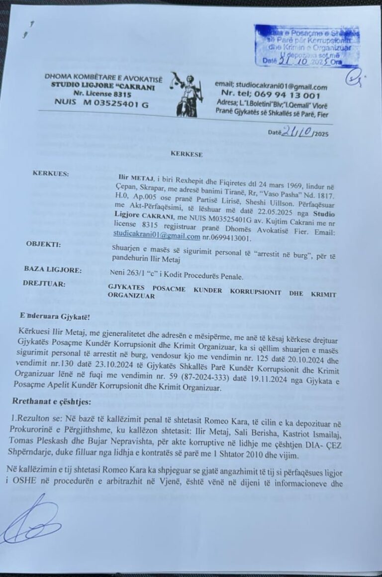 Kërkesa e Metës, vjen një vit nga arrestimi i tij.