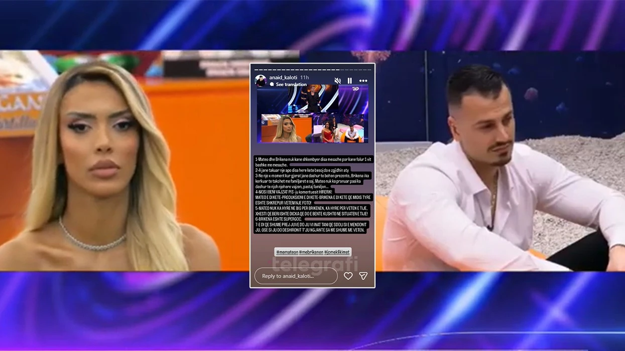 Për të sqaruar situatën dhe për të shuar aludimet e fansave, Anaid Kaloti, fitues i Big Brother 6, ka dhënë një koment të detajuar në Instagram, duke zbuluar prapaskenat e raportit mes Brikenës dhe Mateos jashtë shtëpisë.