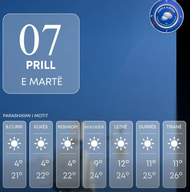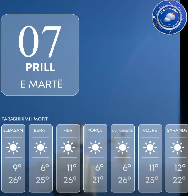 Kushte të qëndrueshme atmosferike dhe temperatura deri në 26 gradë/ Njihuni me parashikimin e motit, 7 Prill 2026