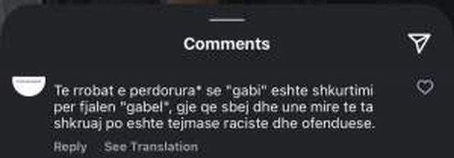 “Në një video që kam postuar më herët, përdora pa dashje një fjalë që nuk e dija se ishte ofenduese për komunitetin Rom. E kam hequr videon dhe dua të kërkoj ndjesë nëse dikush është ndier i lënduar. Kam respekt të madh për çdo kulturë dhe komunitet në vendin tim.”