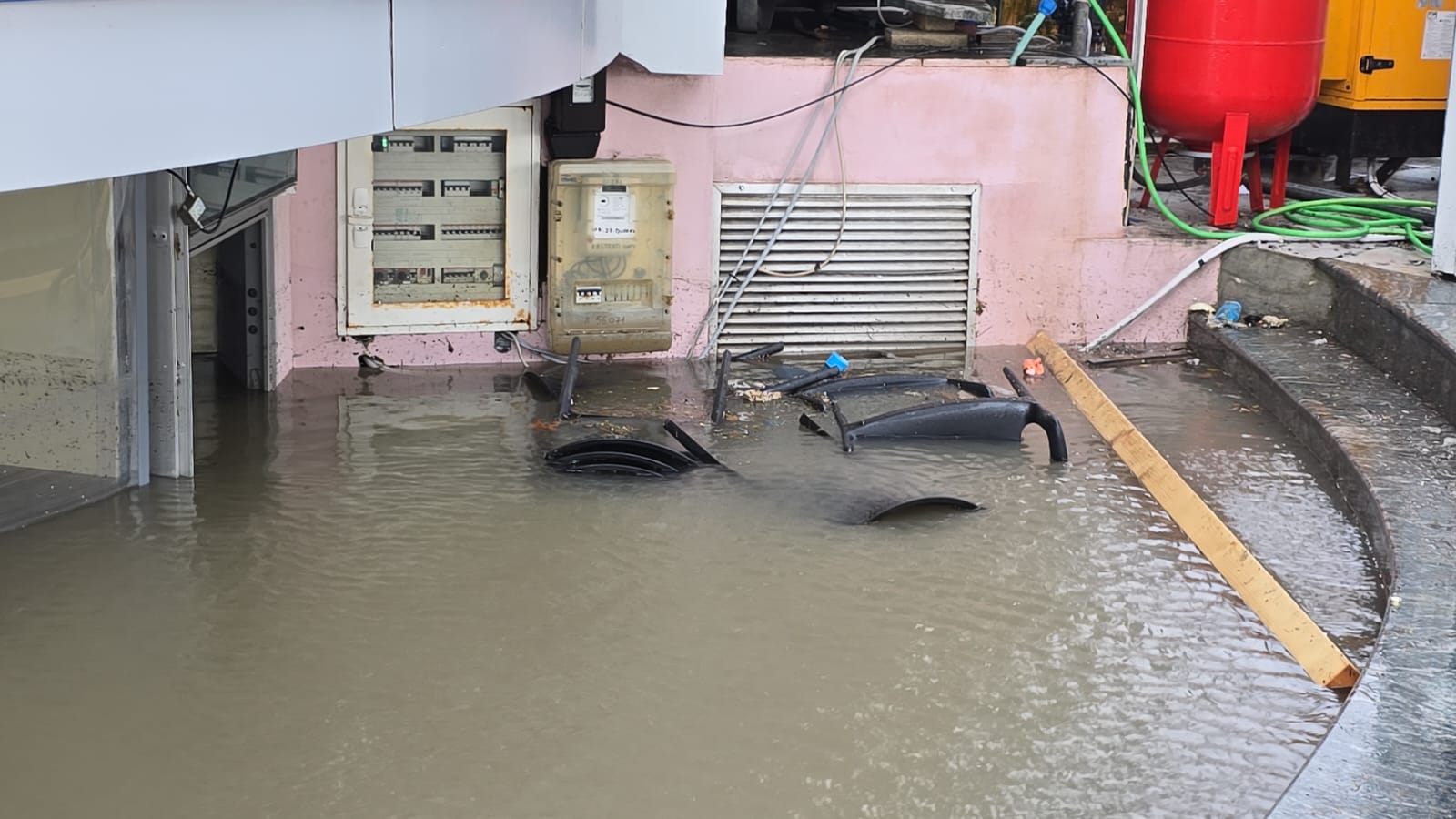 Në një pallat në zonën e portit të Durrësit, niveli i ujit ka arritur pranë aparatet e energjisë elektrike.