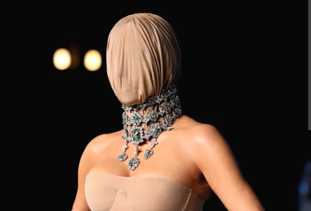 Kardashian është e njohur për zgjedhjet e saj të guximshme dhe shpeshherë kontraverse në modë. Në këtë event, ajo u paraqit me një fustan Margiela me ngjyrë nude dhe një maskë që i mbulonte plotësisht fytyrën, duke tërhequr gjithë vëmendjen e të pranishmëve dhe mediave.