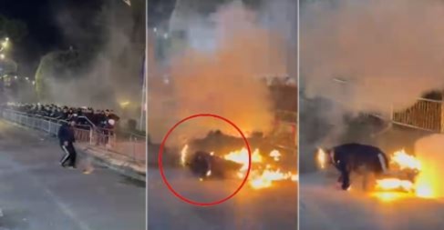 Një incident i frikshëm ndodhi para Kryeministrisë, teksa qytetarët po hidhnin molotov në drejtim të kryeministrisë. Siç shihet edhe në pamje qytetari u mbulua nga flakët për disa sekonda, por menjëherë reagoi duke u larguar me vrap dhe fatmirësisht pa lëndime.