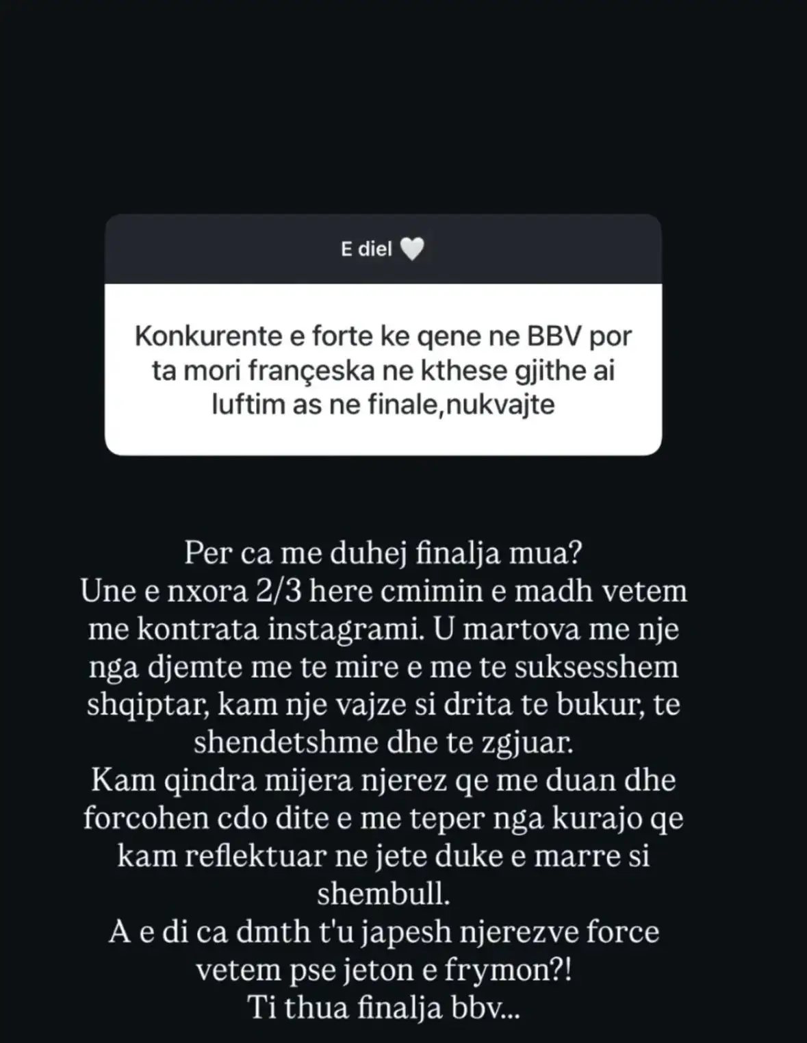 “Për çfarë më duhej finalja mua? Unë e nxora 2-3 herë çmimin e madh vetëm me kontrata Instagrami,” shkroi ajo në një koment.
