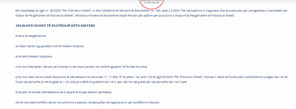 Në njoftimin zyrtar të ndarë për mediat, janë përcaktuar edhe kriteret e personave që do të garojnë për këtë post.