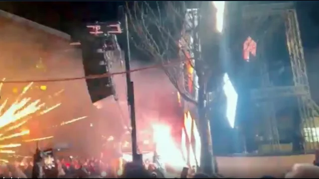 Pamjet e publikuara në rrjetet sociale tregojnë persona që mbajnë mbi kokë shishe shampanje me fishekzjarrë të ndezur, shumë pranë tavanit, mes një turme të dendur njerëzish.