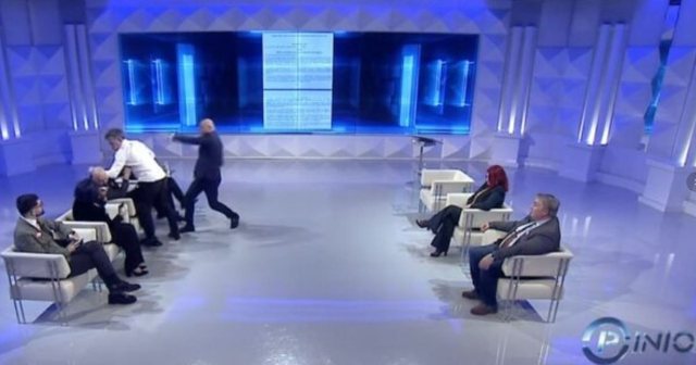 Mirëpo, në një moment debati mes të dyve është ndezur dhe Berat Buzhala është ngritur nga vendi i tij, shkoi në ulësen ku ndodhej Albatrosi dhe i vuri duart në fyt publicistit.