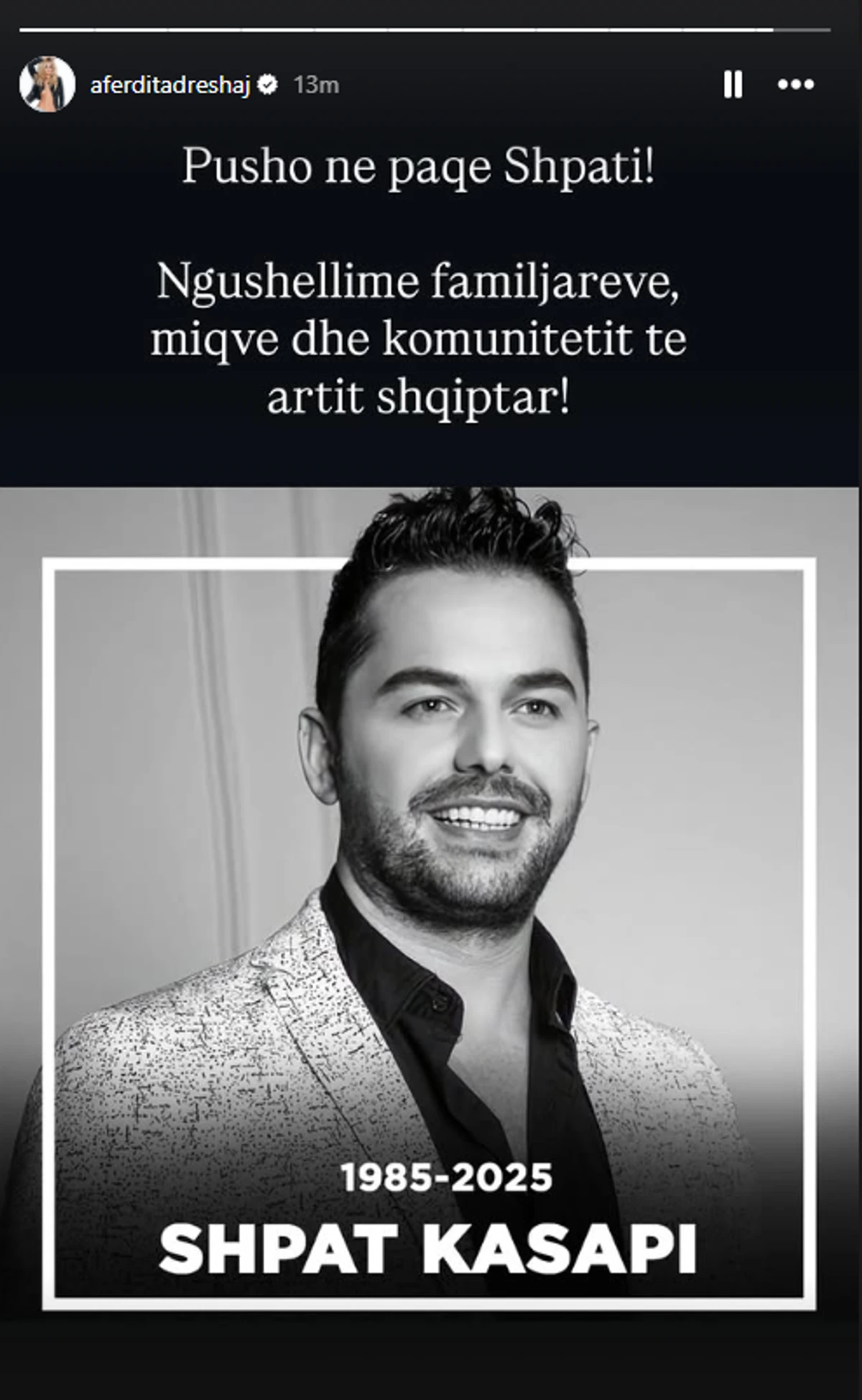 “Pusho në paqe Shpati. Ngushëllime familjarëve, miqve dhe komunitetit të artit shqiptar”, tha ajo.