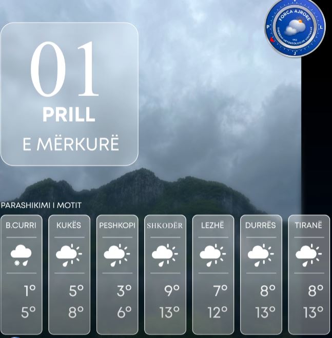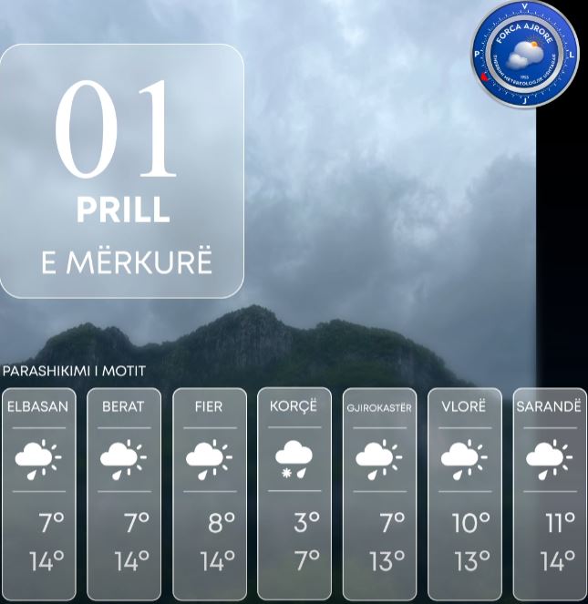 Këtë të mërkurë vendi ynë, do të ndikohet nga kushte atmosferike të paqëndrueshme. Moti parashikohet me vranësira mesatare deri të dendura.