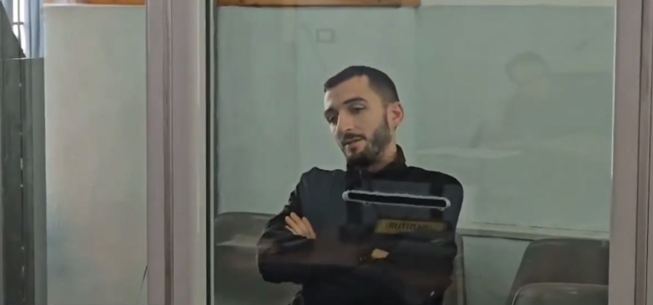 Në pamjet e siguruara për BalkanWeb nga gazetarja Klodjana Haxhiaj, i riu shfaqet i buzëqeshur pas kafazit prej xhami.
