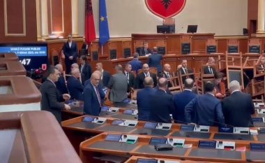 VIDEO/ Nis kaosi në Parlament, opozita kthen përmbys karriget në sallë