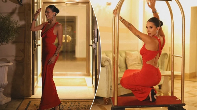 Prerja e veçantë në shpinë dhe detajet e tjera, i dhanë një pamje super glamuroze dhe plot vetëbesim.