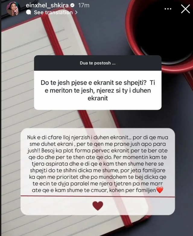 Me këtë deklaratë, ajo la të hapur mundësinë e një rikthimi në të ardhmen, por duke theksuar se çdo hap i saj do të jetë në harmoni me jetën personale.