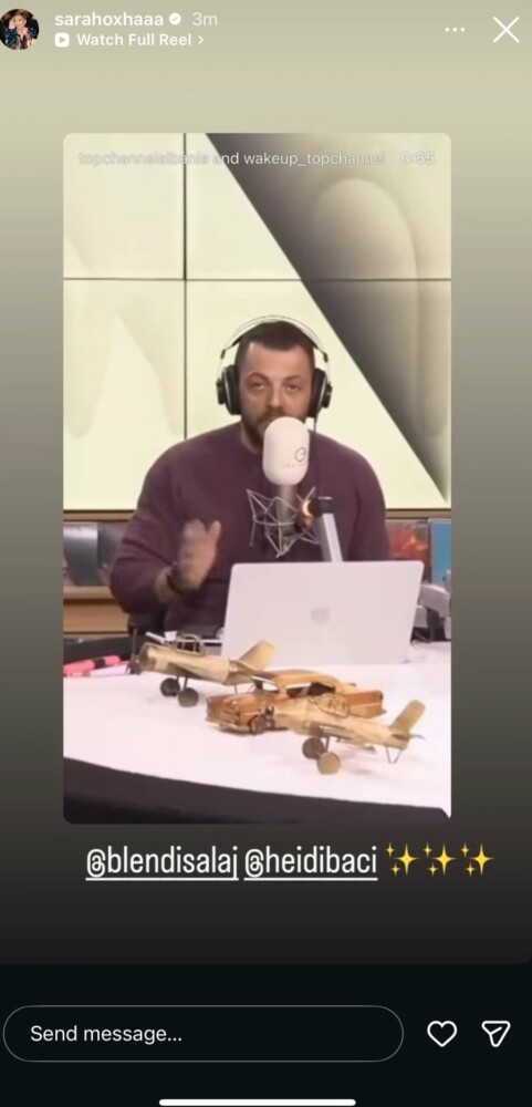 Lidhur me këto zhvillime, Sara Hoxha ka bërë një postim domethënës në profilin e saj në Instagram. Ajo ka publikuar në “Story” një moment nga transmetimi i sotëm, duke bërë “tag” Heidin dhe Blendin, dhe e ka shoqëruar postimin me disa emoji yjesh.