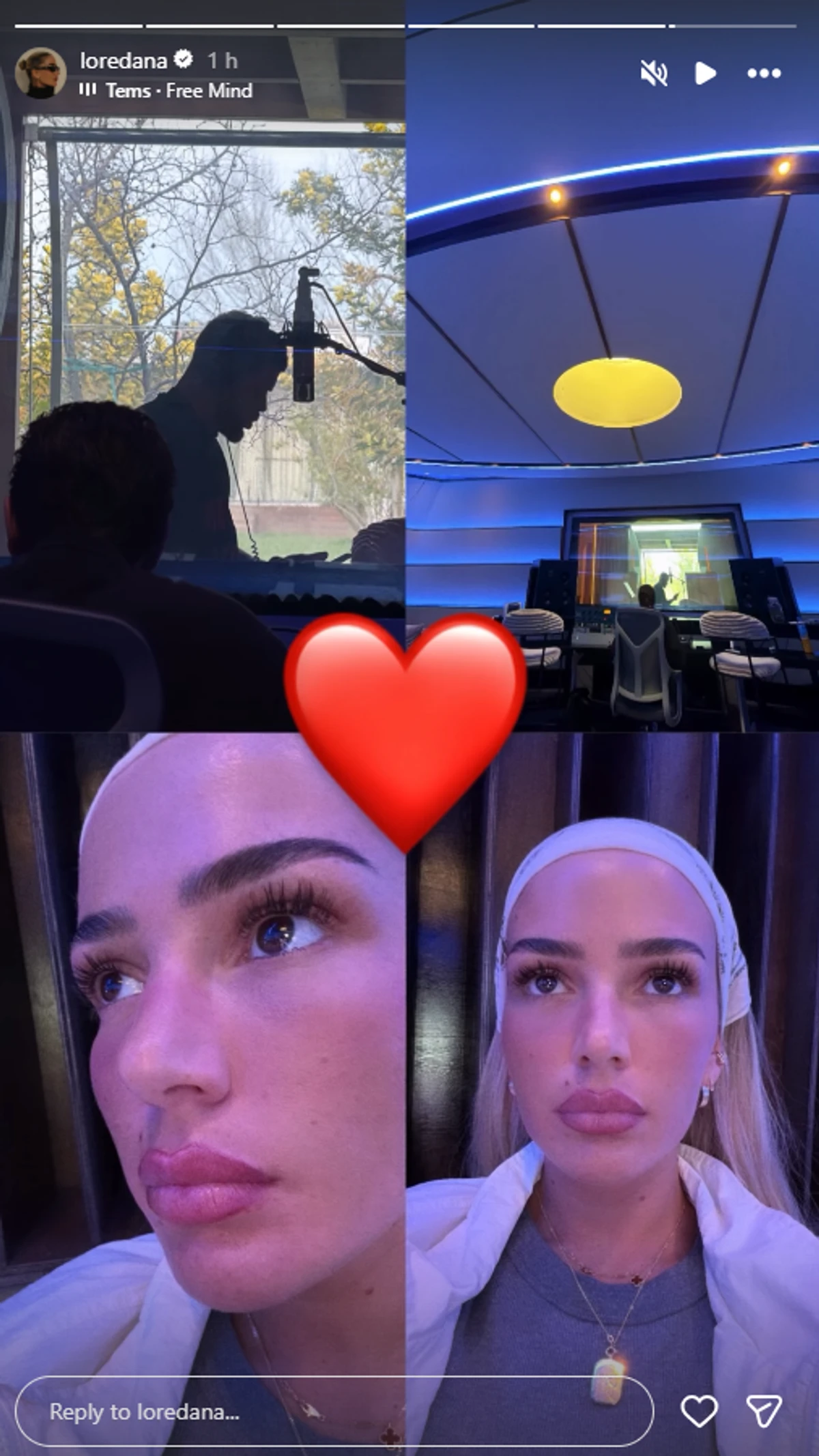 Artistja ka publikuar një kolazh fotografish në një studio muzikore, derisa në një prej imazheve të saj shfaqet reperi Noizy.
