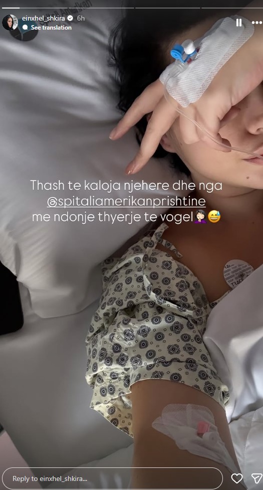 Einxhel ka postuar në rrjetin e saj social “Insagram” foto nga spitali, e shtrirë në krevat dhe me serum në dorë.