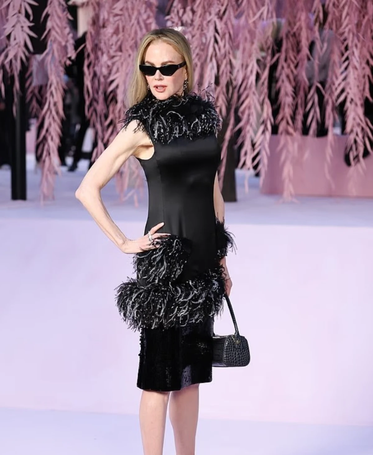 Nicole, 58 vjeç, tërhoqi vëmendjen me një fustan midi të zi me pupla dhe syze të errëta, ndërsa kombinoi pamjen me këpucë klasike bardh e zi dhe u ul pranë Anna Wintour në FROW. Ajo dukej e mrekullueshme dhe e sigurt ndërsa pozonte për kamerat.