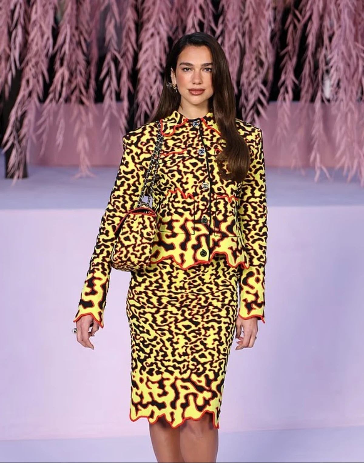 Dua Lipa, 30 vjeç, i solli ngjyra dhe energji Parisit me një kombinim fundesh dhe xhaketash të verdha dhe të kuqe shumëngjyrëshe, ndërsa u përshëndet miqësisht me fansat jashtë ndërtesës, shkruan DailyMail.
