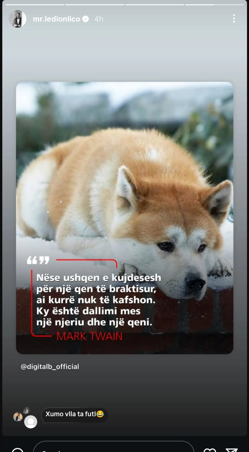 Pas këtij thumbi, Ledion Liço ka shpërndarë një fotografi në InstaStory me një thënie të shkrimtarit Mark Twain, e cila shihet si përgjigje ndaj situatës së krijuar.
