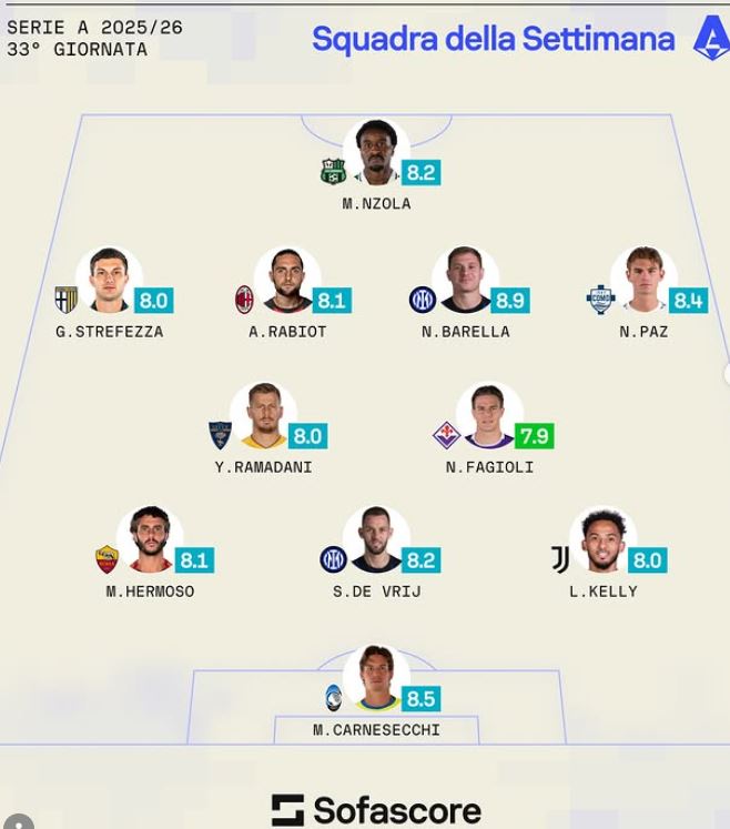 Por jo vetëm kaq, 30-vjeçari është zgjedhur edhe në formacionin e javës së 33-të në Serinë A.