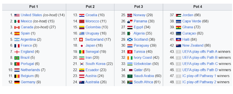 Në bazë të renditjes së FIFA-s janë ndarë edhe vazot deri tani. Ka dy skenare. I pari, akoma i pazyrtarizuar, tregon se të gjithë përfaqësueset e “play off” do të vendosen në vazon e fundit për shortin e 5 dhjetorit.
