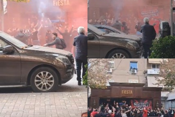 Siç mund të shihet dhe në videon e mëposhtme tifozët festojnë me këngë patriotike, ndërsa nuk kanë munguar edhe flakadanët.