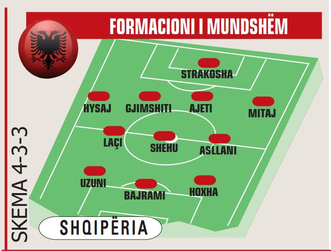 Për herë të parë, Shqipëria ka arritur në një tur të tillë të Botërorit dhe për të shkruar histori, 11 lojtarët që do të luajnë nga minuta e parë dhe ata që do të aktivizohen nga stoli, duhet që të bëjnë ndeshjen perfekte.