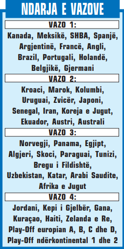 Më pas, do të merren goglat nga vazoja e dytë e kështu me radhë deri në vazon e katërt ku bën pjesë edhe Shqipëria në rast se arrin të sigurojë një biletë për në Botërorin e vitit të ardhshëm që do të zhvillohet në Amerikë, Meksikë e Kanada.