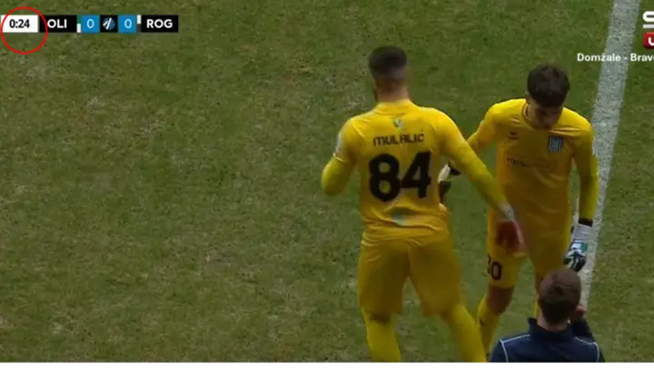 Skuadra sllovene NK Rogaska zëvendësoi portierin e tyre pas vetëm 20 sekondash në ndeshjen e tyre kundër Olimpija Ljubljana të dielën – dhe thuhet se ka një arsye brutale pas kësaj.