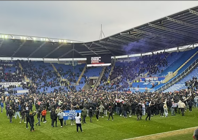 Pushtimi i fushës ndodhi në minutën e 16-të të ndeshjes, kur rezultati ishte 0-0. Zgjodhën pikërisht këtë minutë, pasi 16 janë që Redingut i janë zbritur në klasifikim për problemet financiare.